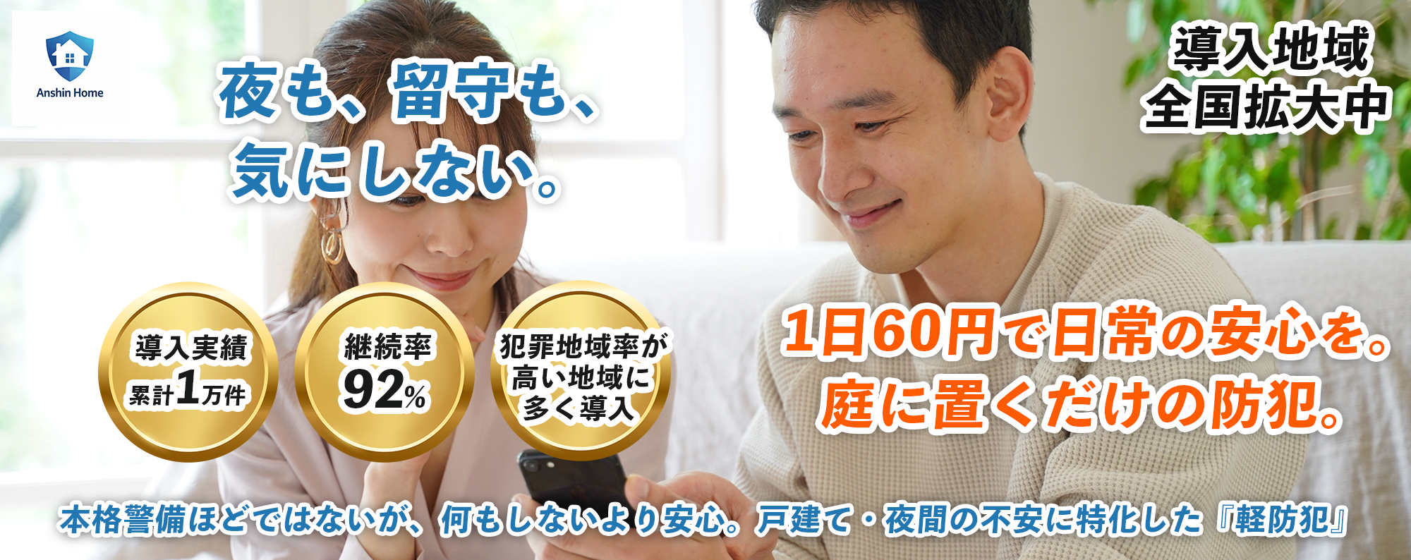 本サービスは、本格的な警備サービスの代替ではありません。 機能を必要最低限に絞ることで、 初期費用なし・月額を抑えた価格を実現しています。 「何もしない不安」を減らすための、防犯の入口となるサービスです。