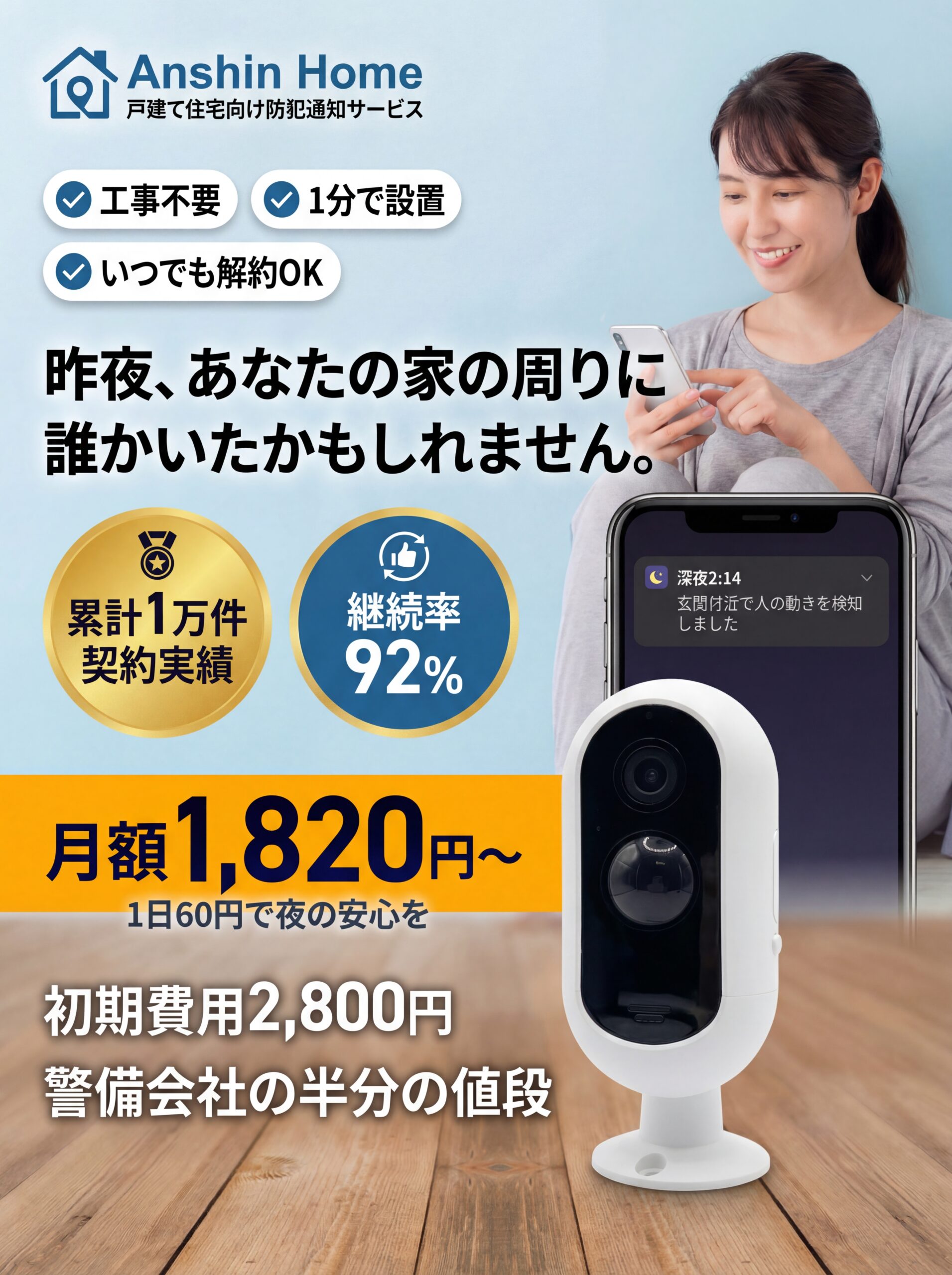 そのため、導入のハードルが高く、 多くの家庭では防犯対策が後回しになりがちです。